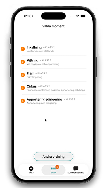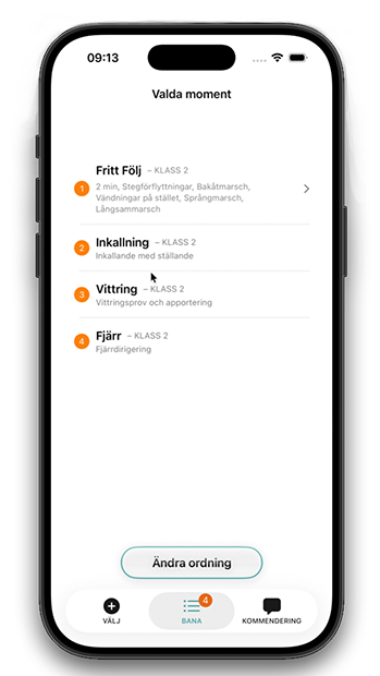 Om du vill, justera ordningen i din bana tryck på ÄNDRA ORDNING. Då kan du ändra ordningen på momenten eller ta bort moment. Sluta med BEKRÄFTA.